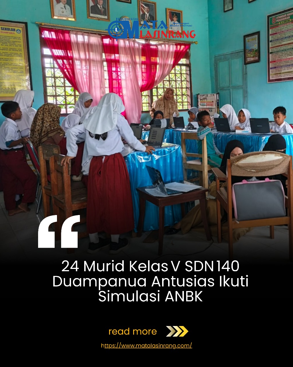 PINRANG.MATALASINRANG.com– Sebanyak dua puluh empat siswa‑siswi kelas V SDN 140 Duampanua memperlihatkan semangat tinggi ketika mengikuti simulasi Asesmen Nasional Berbasis Komputer (ANBK) di ruang Kantor Kepala Sekolah.