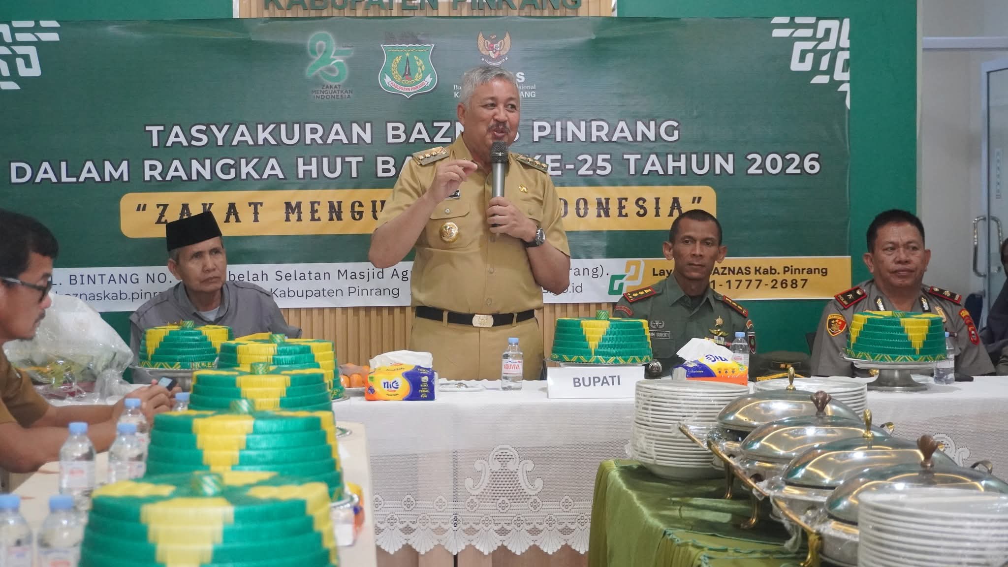 ‎‎Hal ini disampaikan Bupati Pinrang, H.A. Irwan Hamid, S.Sos saat menghadiri seremoni peringatan Hari Ulang Tahun Baznas ke-25 yang digelar di Kantor Baznas Kabupaten Pinrang, Senin (26/1/2026).