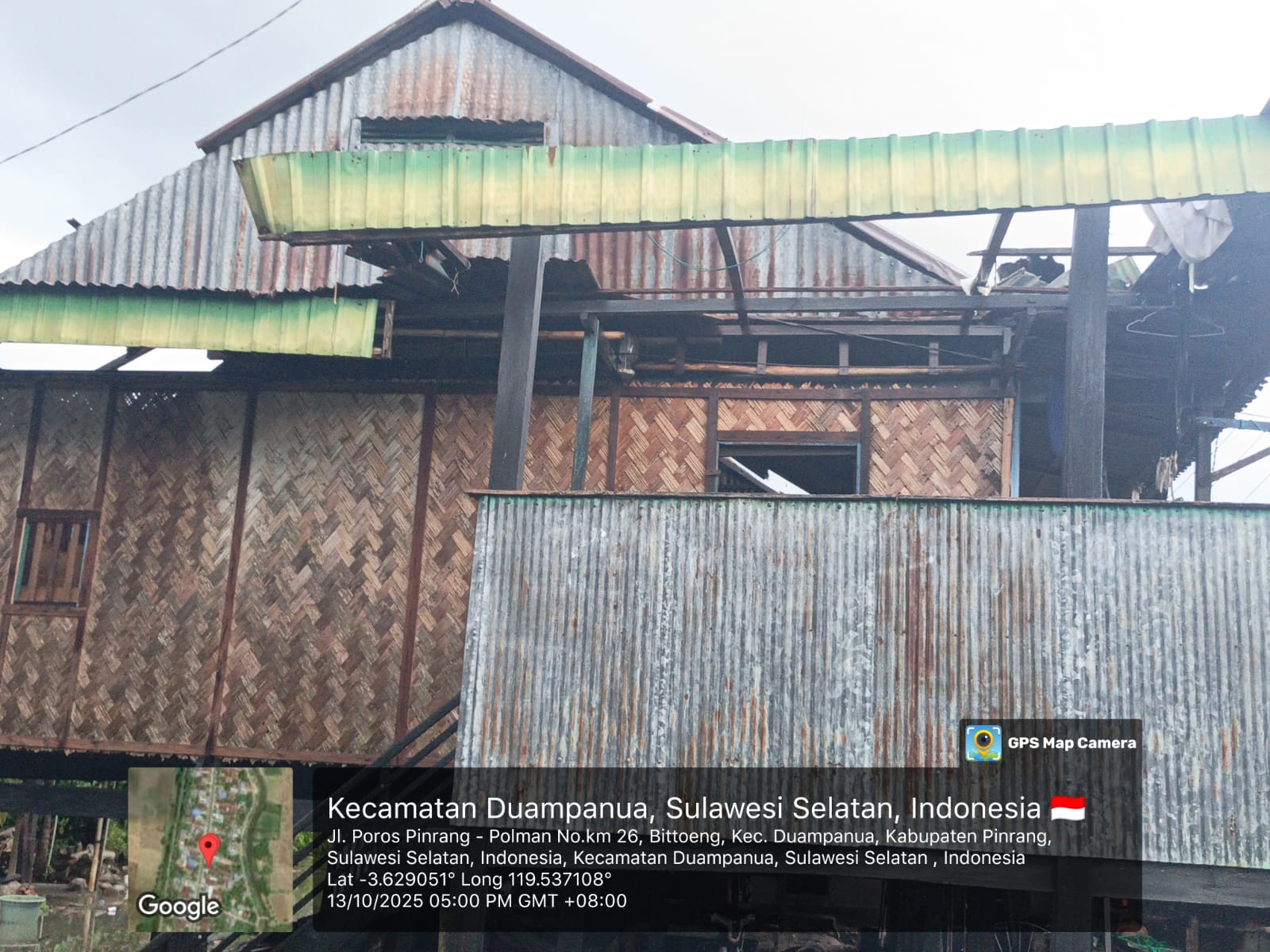 ‎‎PINRANG.MATALASINRANG.com– Peristiwa cuaca ekstrem yang tiba-tiba terjadi di kawasan Kelurahan Bittoeng,Kecamatan Duampanua,Kabupaten Pinrang,pada Senin, 13/10/2025 sore, menimbulkan kepanikan hebat.