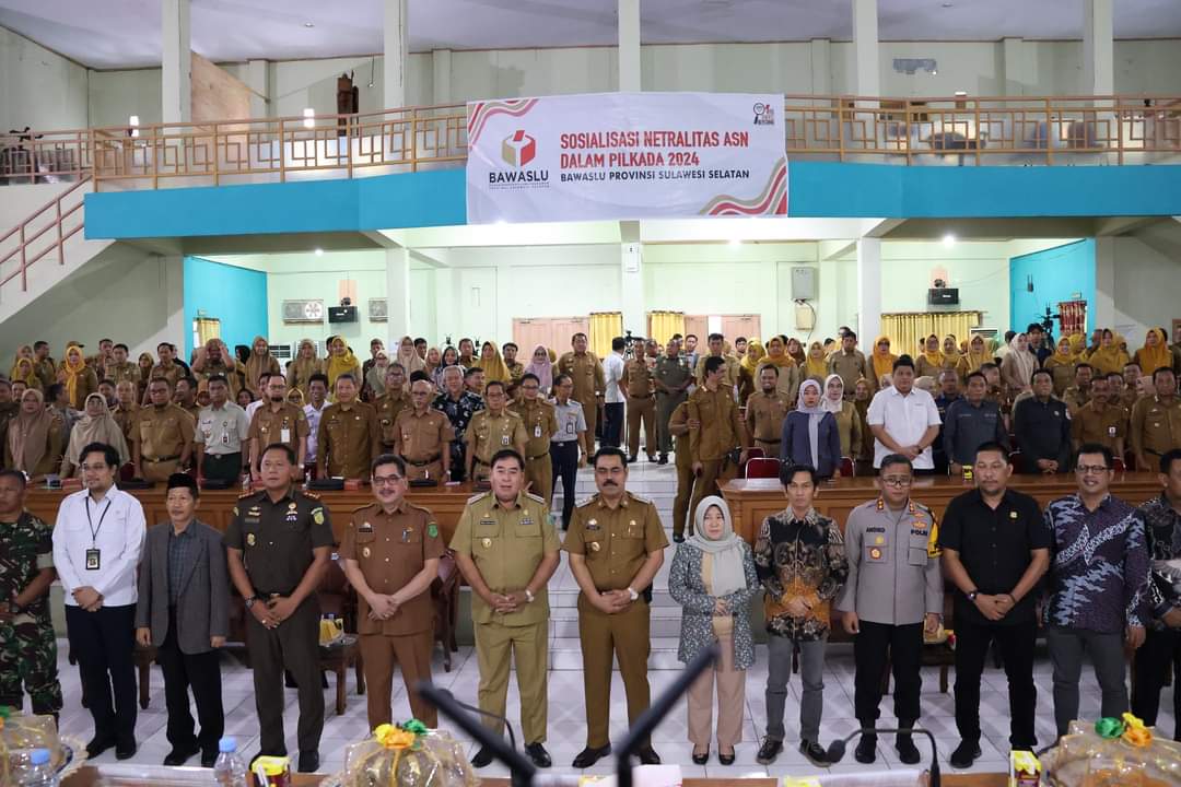 MATALASINRANG.com- Sosialisasi Netralitas ASN diselenggarakan oleh Badan Pengawas Pemilihan umum ( BAWASLU) Provinsi Sulawesi Selatan di Kabupaten Pinrang pada Senin,14 Oktober 2024 bertempat di ruang pola kantor Bupati Pinrang