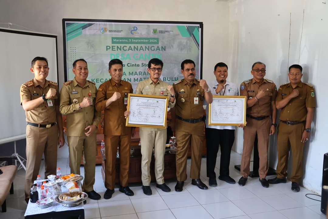 Kegiatan ini juga dirangkaikan dengan penyematan tanda sebagai Agen Statistik Desa Marannu oleh Pj. Bupati Pinrang, serta penandatanganan Piagam Pencanangan Desa Marannu sebagai Desa Cantik.