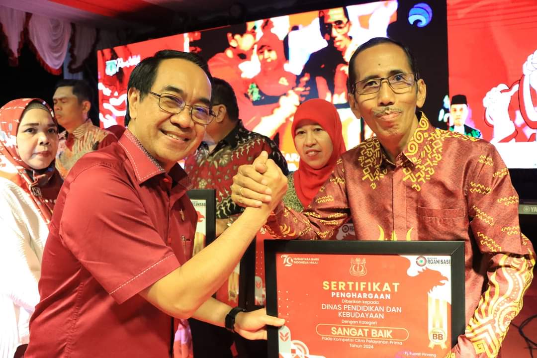 PINRANG |Matalasinrang.com- Pada Hari Kemerdekaan RI ke-79 tepatnya Sabtu malam 17 Agustus 2024 suatu yang bersejarah bagi Dunia pendidikan di Kabupaten Pinrang, Dinas Pendidikan dan Kebudayaan (Disdikbud) menerima Sertifikat Penghargaan Citra Pelayanan Prima (CPP) dengan kategori “Sangat Baik.” Penghargaan ini menjadi sebuah pengakuan atas dedikasi dan komitmen yang terus menerus ditunjukkan oleh Disdikbud Pinrang dalam memberikan pelayanan pendidikan yang berkualitas kepada masyarakat.