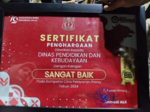 Terpantau media, Kepala Dinas Pendidikan dan Kebudayaan kabupaten Pinrang Andi Matjtja Moenta,S,Sos menerima Penghargaan dalam kompetisi Citra Pelayanan Prima (CPP) sebagai Kategori “Sangat Baik” tahun 2025.
