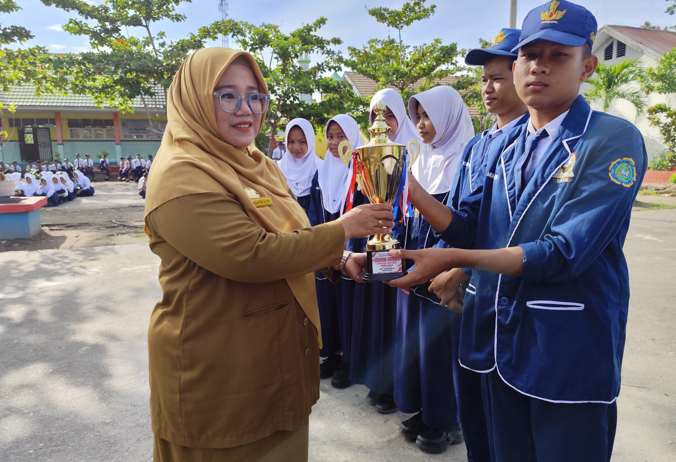 Rinciannya meliputi 11 medali emas, 6 medali perak, dan 5 medali perunggu. Penghargaan dan piala diserahkan langsung oleh Kepala Sekolah, Hj. Nurhidayah, S.Ag, M.Pd, usai upacara bendera pada Senin, 25 Agustus 2025, dalam suasana penuh suka cita dan kebanggaan.