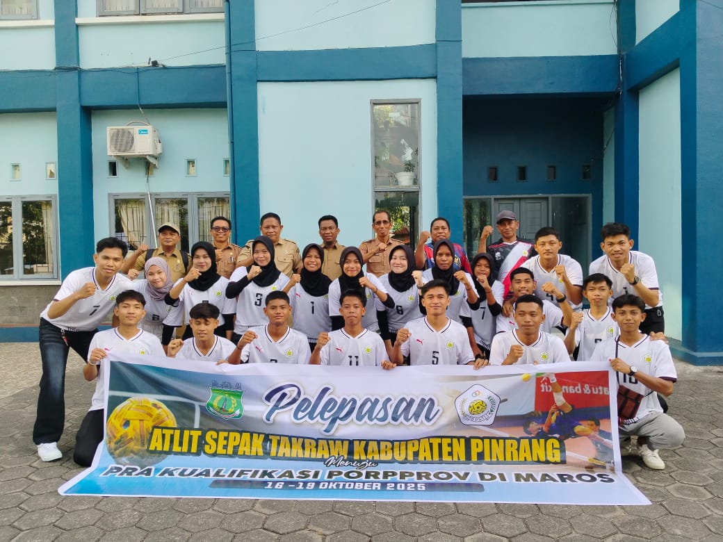‎‎PINRANG.MATALASINRANG.com– Kontingen sepak takraw Kabupaten Pinrang resmi dilepas untuk berlaga di ajang Pra-Kualifikasi Pekan Olahraga Provinsi (Porprov) yang akan digelar di Kabupaten Maros. Pelepasan penuh semangat ini dipimpin langsung oleh Ketua PSTI (Persatuan Sepak Takraw Indonesia) Kabupaten Pinrang, A. Matjtja Moenta S.Sos, didampingi jajaran pengurus.Rabu,15/10/2025.
