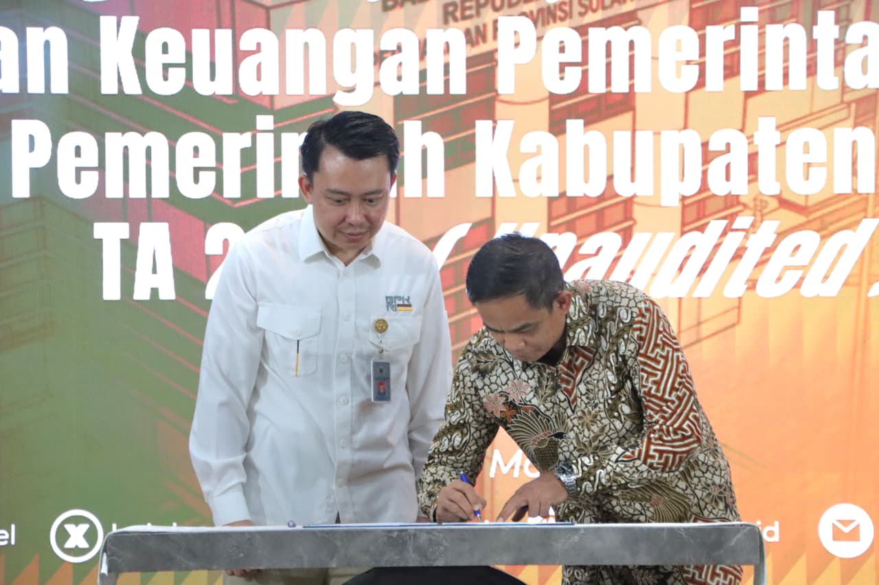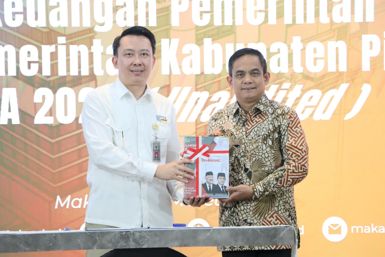 Penyerahan dilakukan langsung oleh Wakil Bupati Pinrang, Sudirman Bungi, kepada Kepala Perwakilan BPK RI Sulawesi Selatan, Winner Franky Halomoan Manalu.