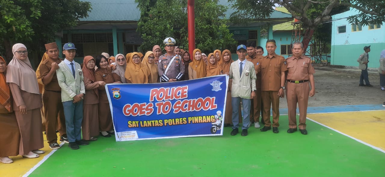 PINRANG.MATALASINRANG.com- Personil Satlantas Polres Pinrang dipimpin Kasat Lantas Polres Pinrang IPTU Syariefuddin.S.H.,M.H melakukan kunjungan di sekolah SMKN 2 Pinrang dalam gelar kegiatan Police Goes To School,Senin,24/2/2025
