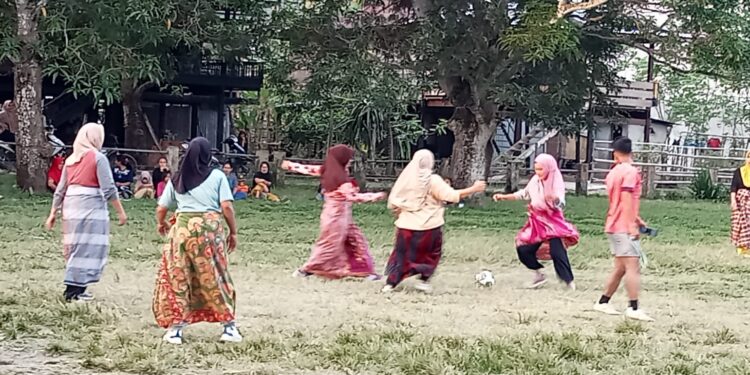 “Ibu-ibu warga kampung Lambalu mama Main Bola kaki dengan menggunakan Kain sarung”