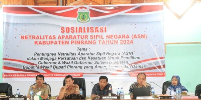 Dengan mengusung tema “PentingNya Netralitas ASN dalam Menjaga Persatuan dan Kesatuan Untuk Pemilihan Gubernur / Wakil Gubernur Sulsel dan Bupati / Wakil Bupati Pinrang yang Aman, Lancar, dan Damai, yang dilaksanakan oleh Badan Kesatuan Bangsa Dan Politik Kab.Pinrang” di Aula Bupati Pinrang Jln Bintang. Selasa, (27/8/2024).